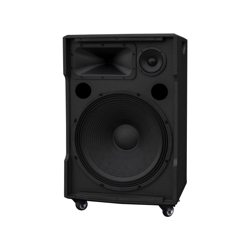 The speaker weighs 44 kg and has dimensions of 815 x 515 x 452 mm. Its front metal grille protects the internal components from impact and environmental damage. The TS-18G850X is fitted with 4 360-degree swivel wheels with locks for easy mobility.