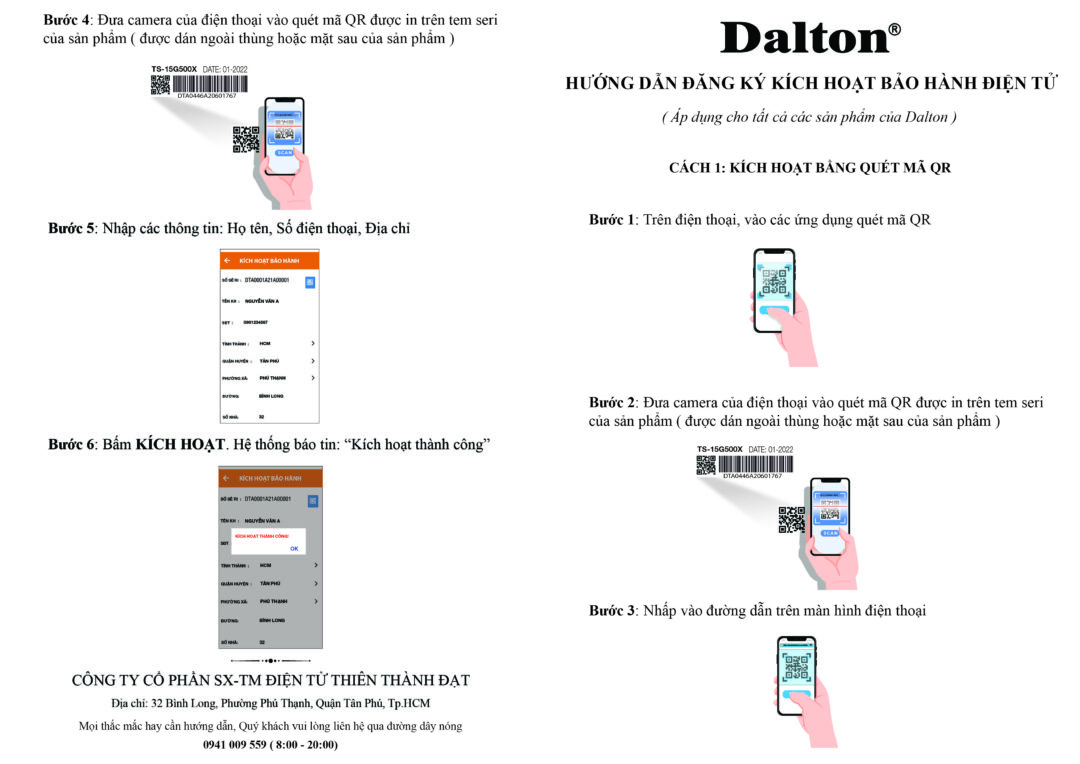 Hướng dẫn sử dụng thẻ bảo hành điện tử Dalton. Dalton hiện có 2 cách để kích hoạt bảo hành điện tử :